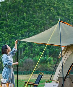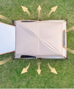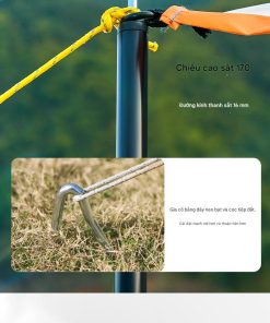 – Khung lều cắm trại làm từ sợi thủy tinh chịu dẻo dai, chịu lực tốt giúp lều đứng vững chãi mà không cần phụ kiện cố định xuống đất