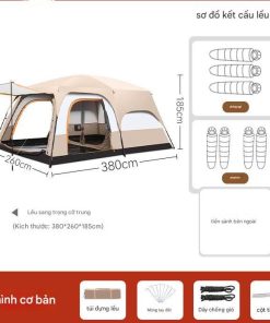 1. Thông số kỹ thuật lều Cắm Trại Camping 5-8 Người 2 Phòng 2 Lớp rộng thoáng Chống gió chống Côn Trùng (mã LT39.1)